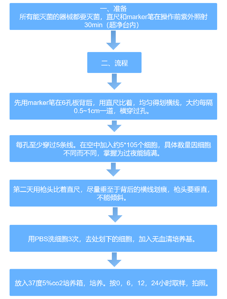 1、一般做划痕实验,都是在无血清或者底血清状态下培养的,否则细胞增殖就不能忽略。