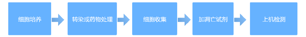 AnnexinⅤ是一种分子量为35-36kD的Ca2+依赖性磷脂结合蛋白,能与细胞凋亡过程中翻转到膜外的PS高亲和力特异性结合。因此AnnexinV作为检测细胞早期凋亡的灵敏指标之一。将AnnexinⅤ进行荧光素FITC标记,以标记了的AnnexinV作为荧光探针,利用流式细胞仪或荧光显微镜可检测细胞凋亡的发生。碘化丙锭(PropidiumIodide,PI)是一种核酸染料,它不能透过完整的细胞膜,但对凋亡中晚期的细胞和死细胞,PI能够透过细胞膜使细胞核染红。因此将AnnexinV与PI匹配使用,就可以将处于不同凋亡时期的细胞区分开来。